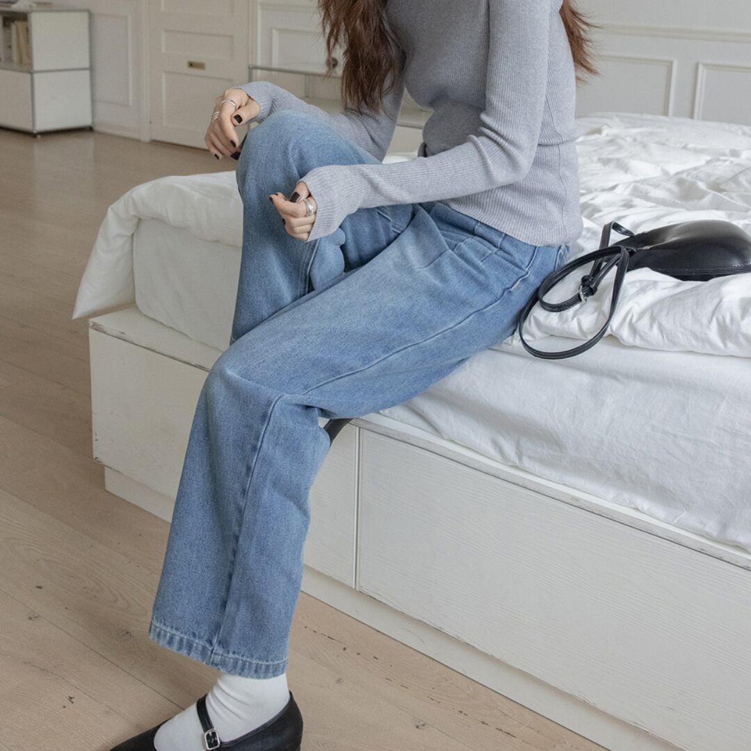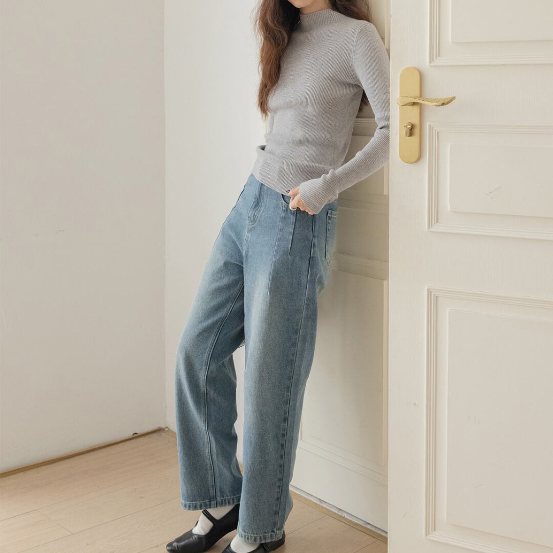 ハイウエストデザインが、ウエストインでもアウトでもきれいにキマる、毎日穿きたくなるデニム。