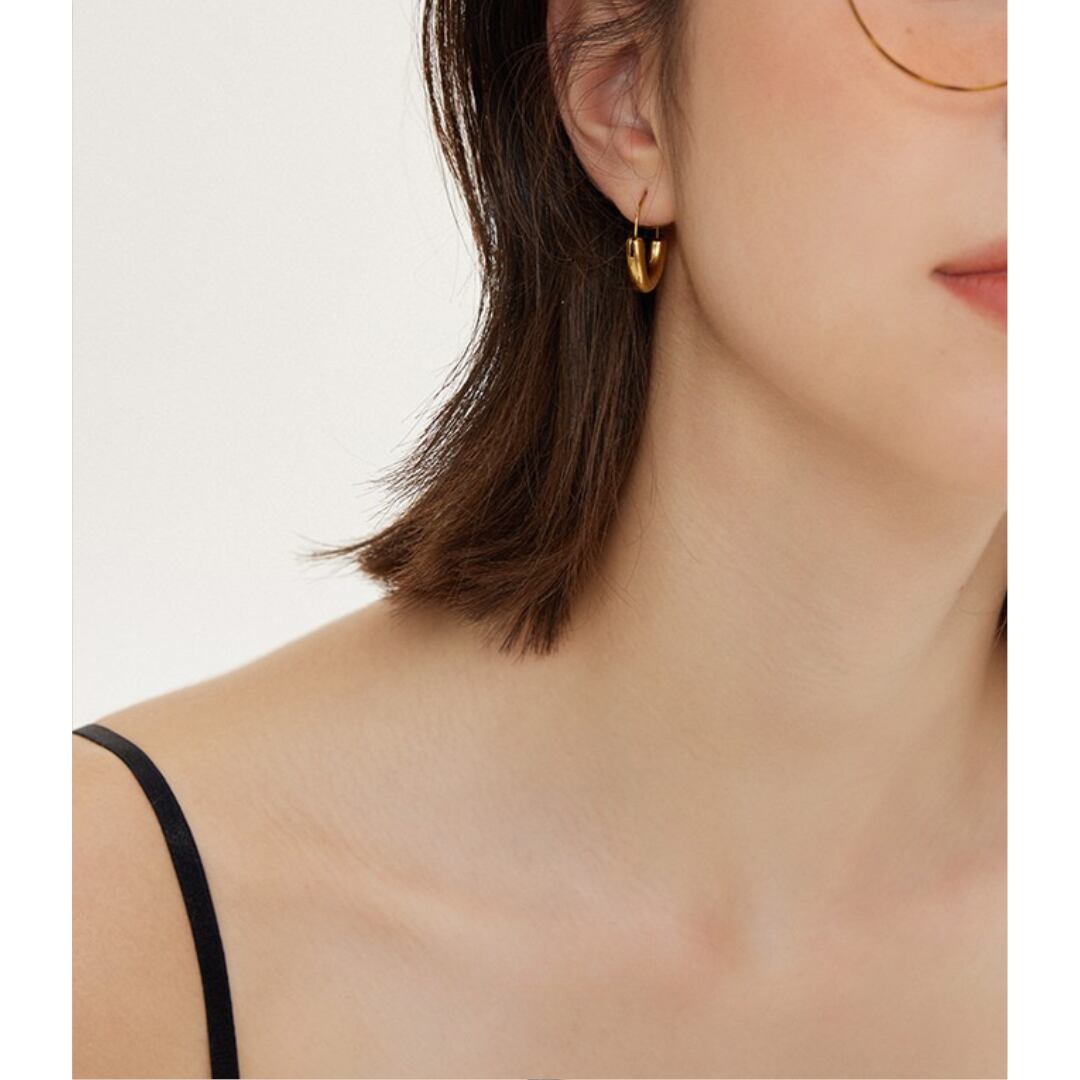 ころんと丸みのある小ぶりのフープに、艶やかなゴールドの輝きが耳元をさりげなく彩るデザイン。