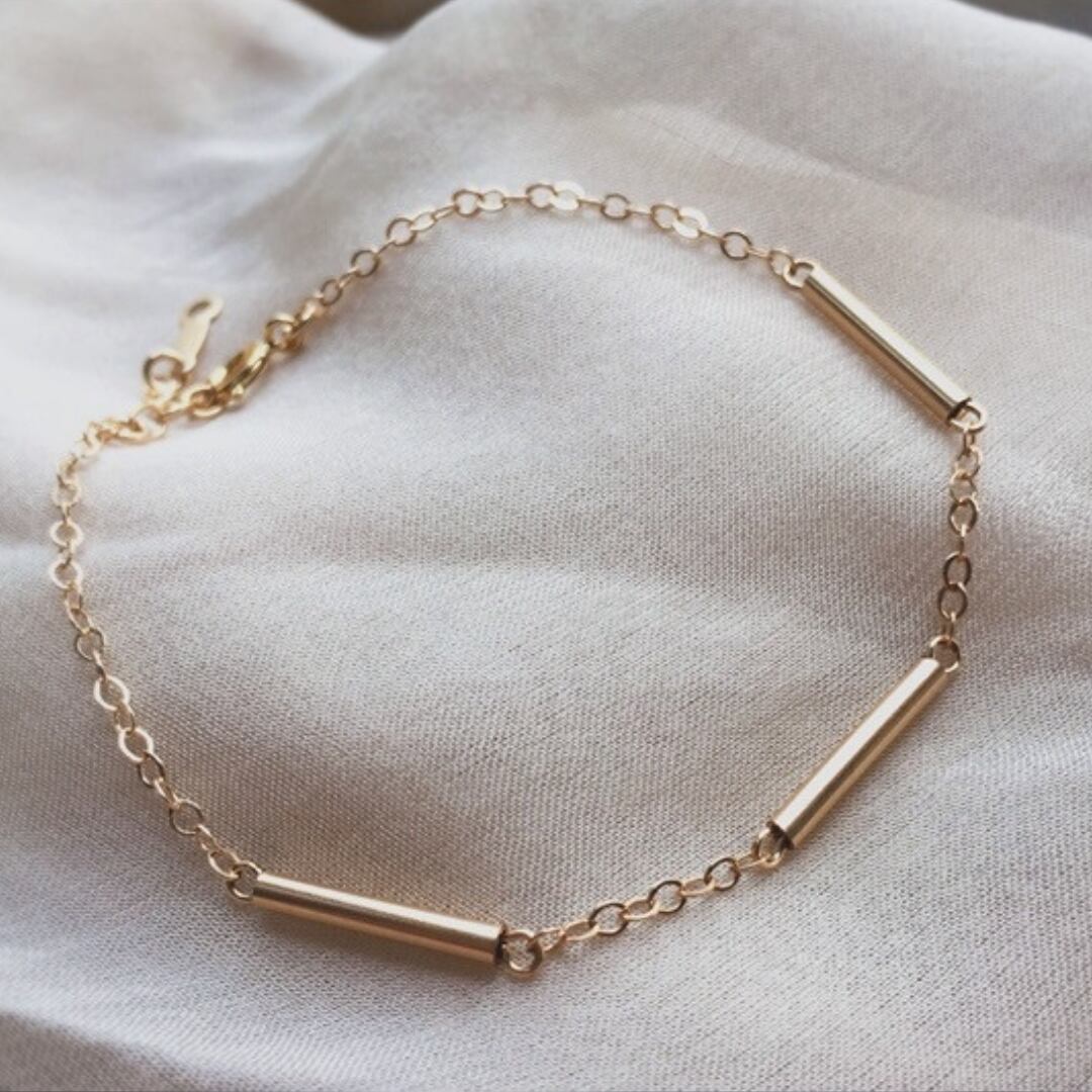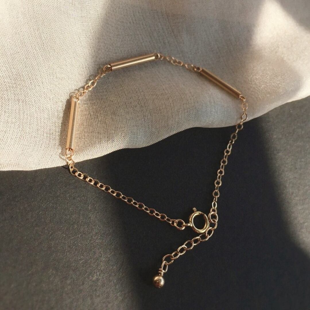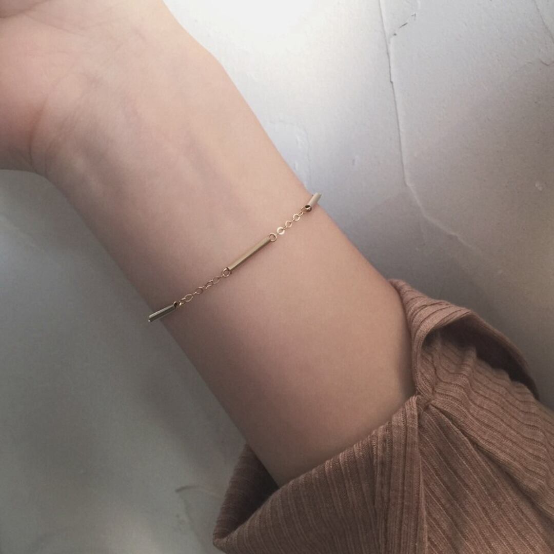 毎日のコーデにさりげない華やかさをプラスしてくれる、スティックモチーフの華奢ブレスレット。