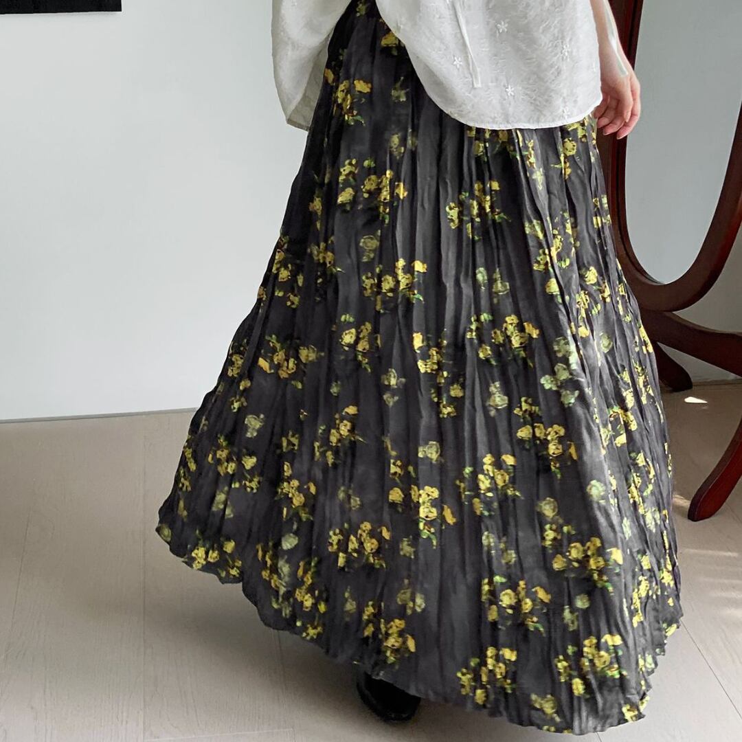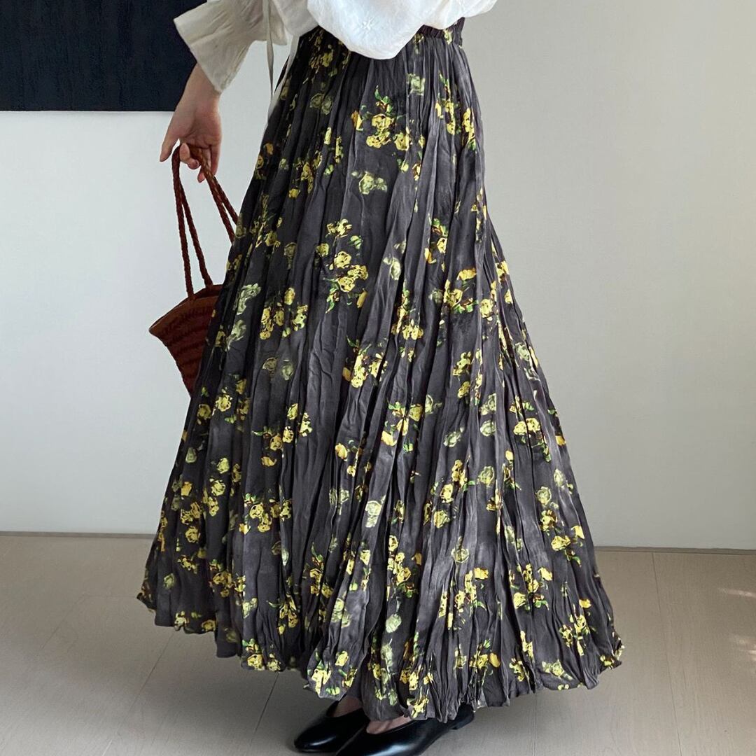 甘さ控えめのイエローフラワーが、コーデをさりげなく格上げ。
