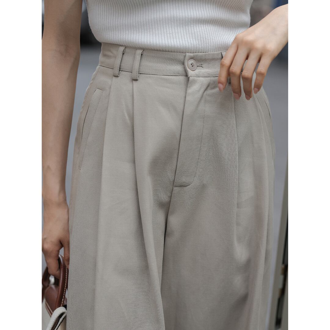 ウエストのタックが、リラックス感ときちんと感を絶妙に両立。