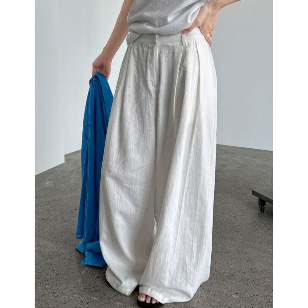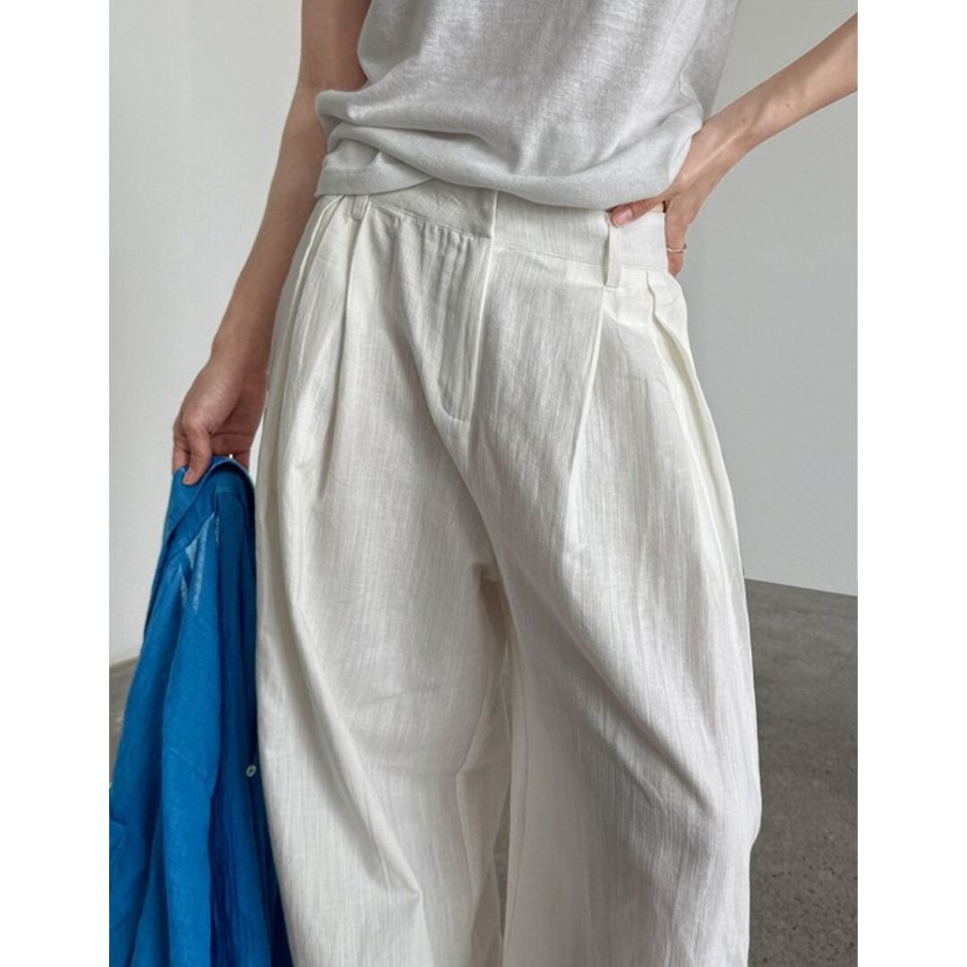 リネンライクな風合いで、春夏の軽やかな装いにピッタリなデザインは、おうち時間にもお出かけにも、心地よく寄り添うパンツです。