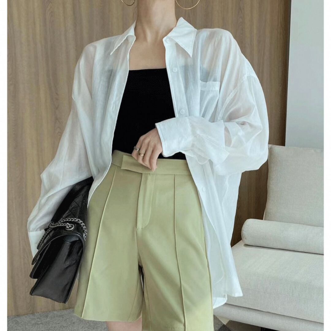 ワイドパンツ、デニム、スカートと、どんなボトムにも合わせやすく、シアーな透け感と抜け感シルエットで、“洒落感”たっぷりのスタイルに。