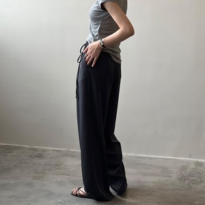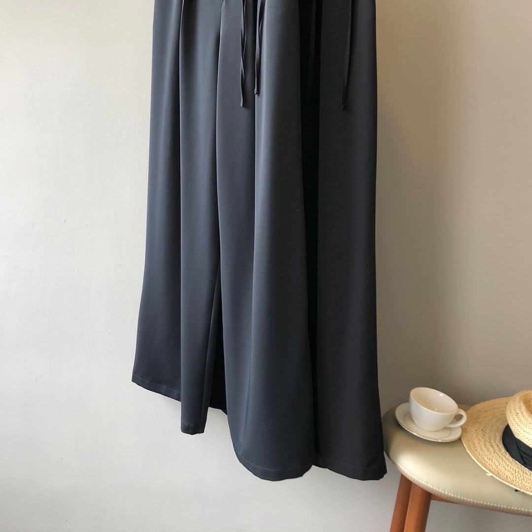 ゆったりとしたワイドシルエットは脚のラインを拾わず、落ち感のある素材が縦ラインを強調し、スタイルアップ効果も抜群◎