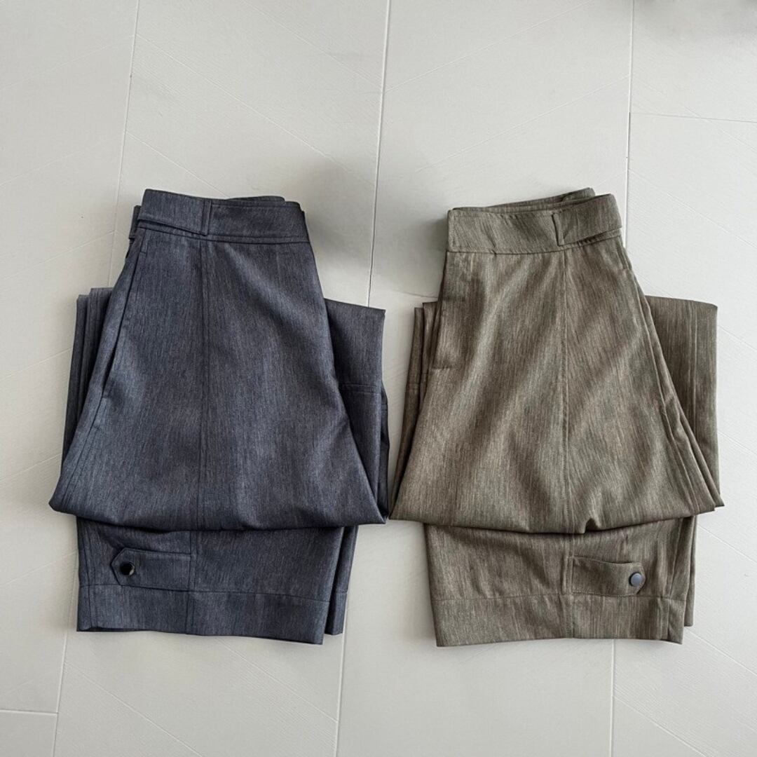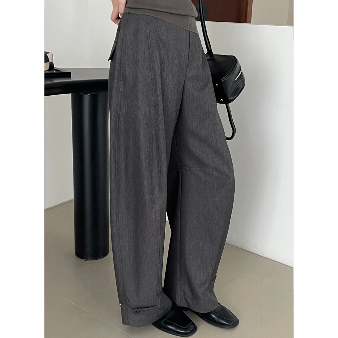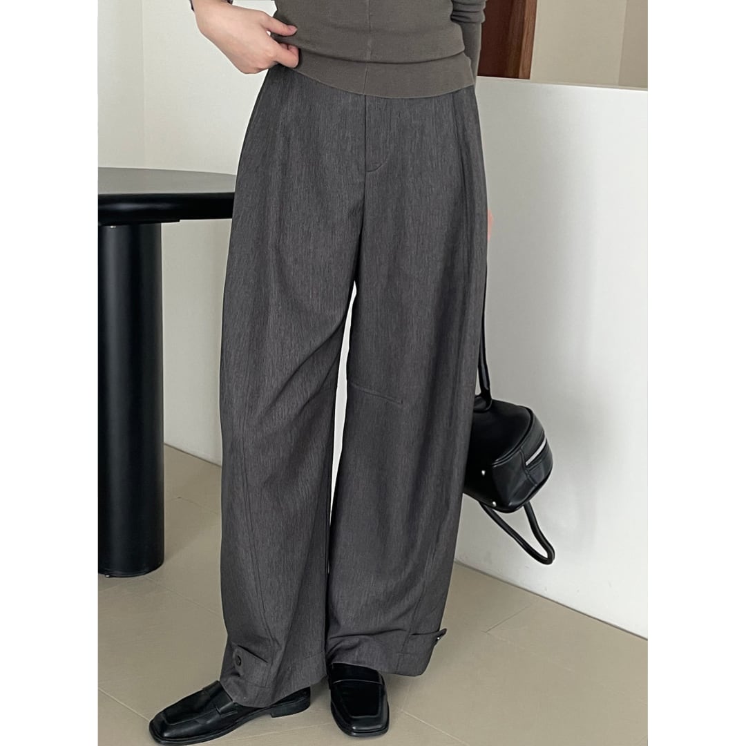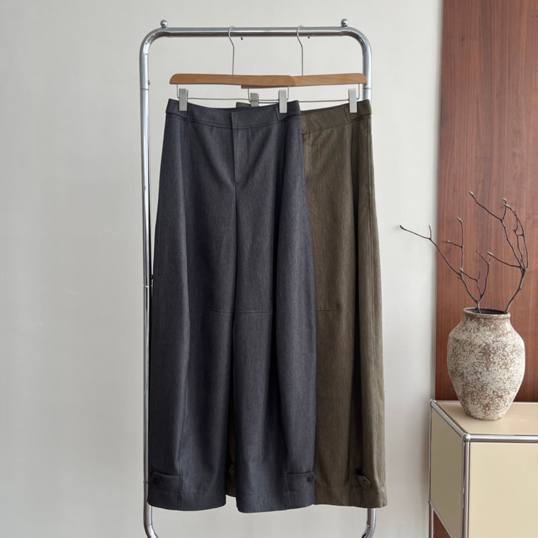 ニュアンスカラーで、どんなトップスにもすんなり馴染むのが魅力のワイドパンツ。