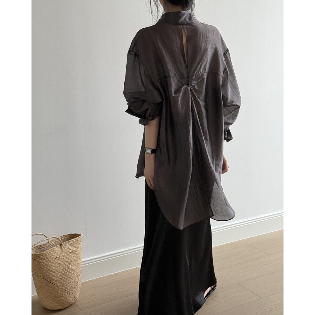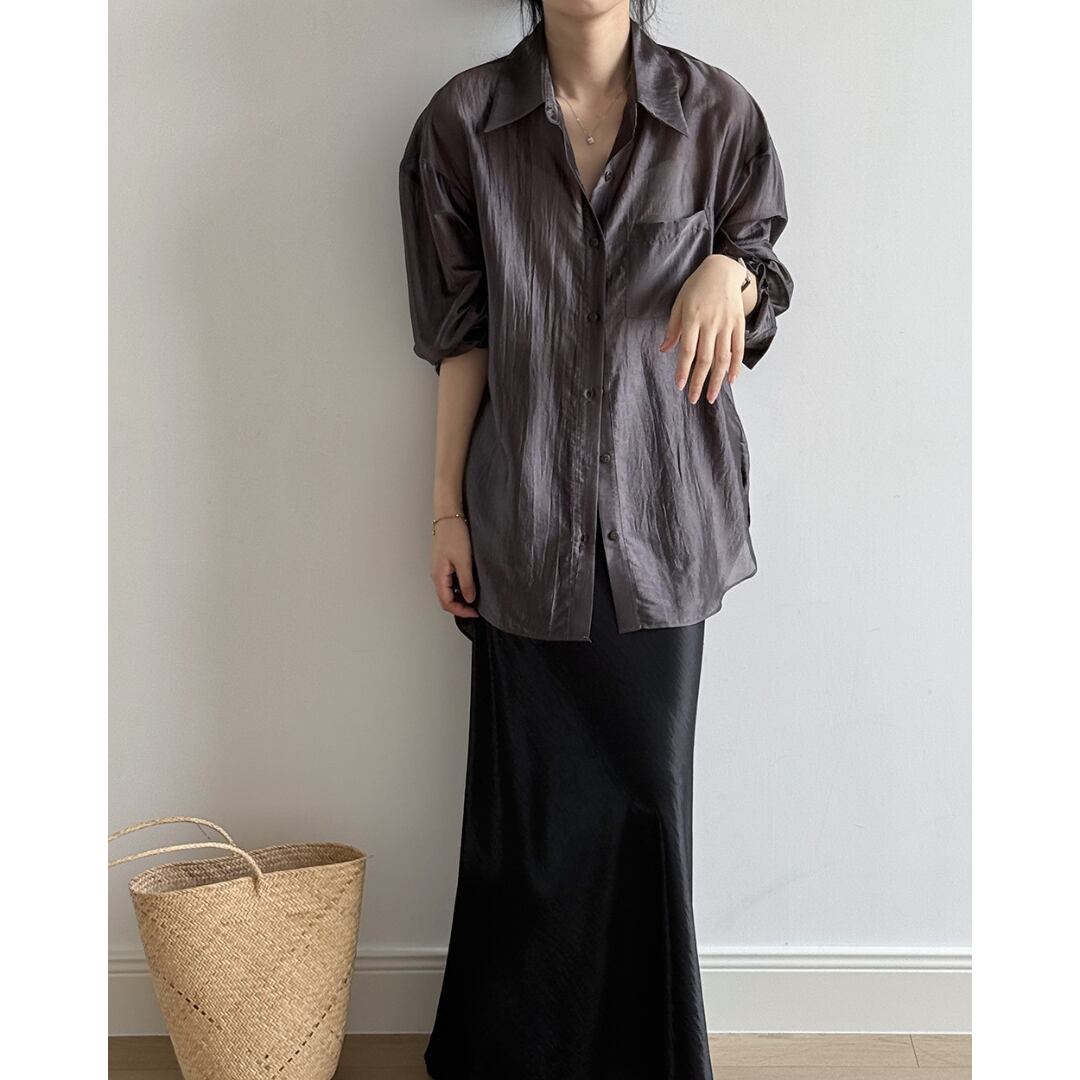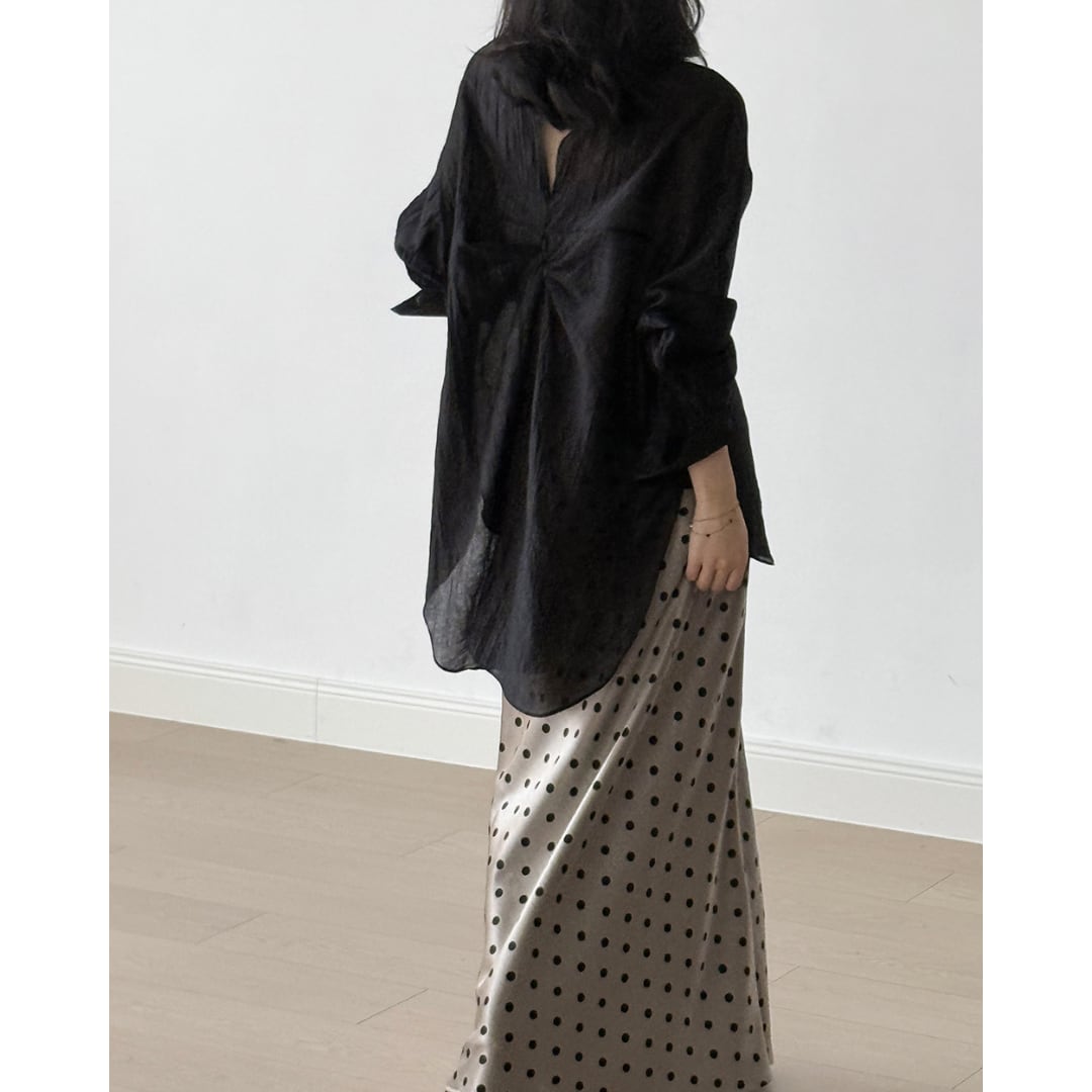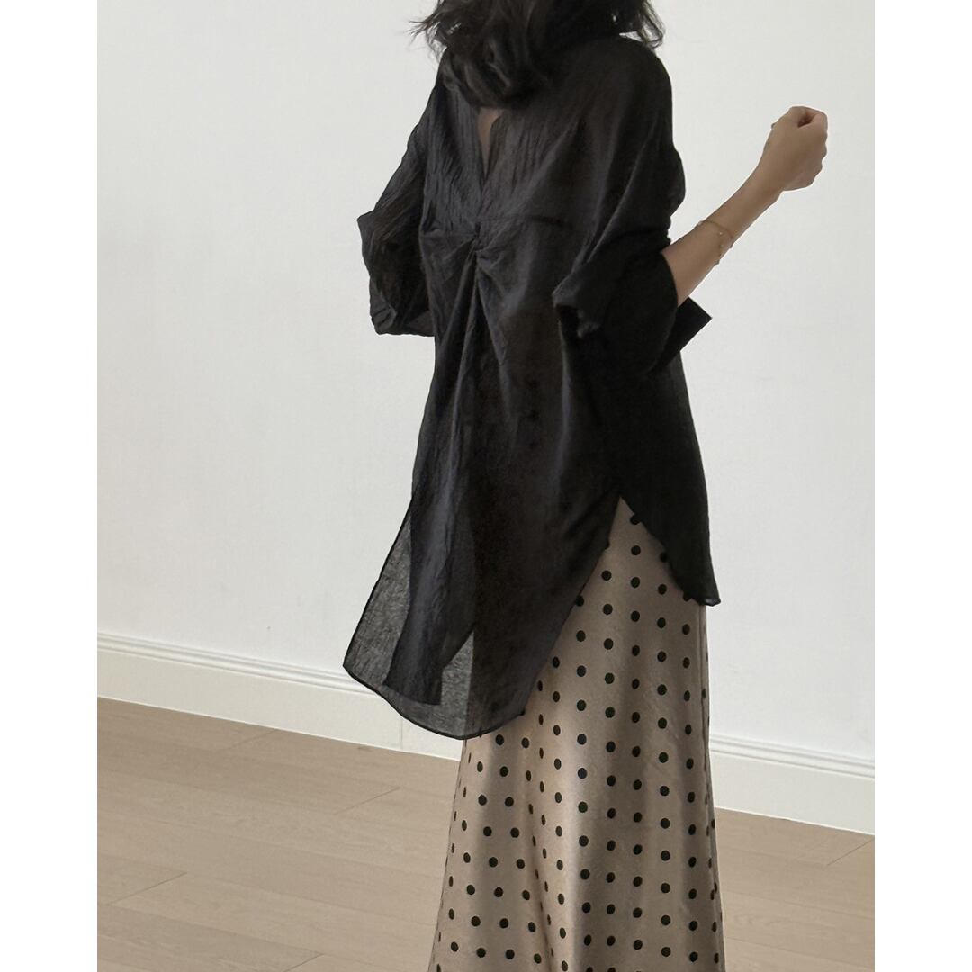上質な透け感と、軽やかな素材が女性らしさを引き立てる1着。