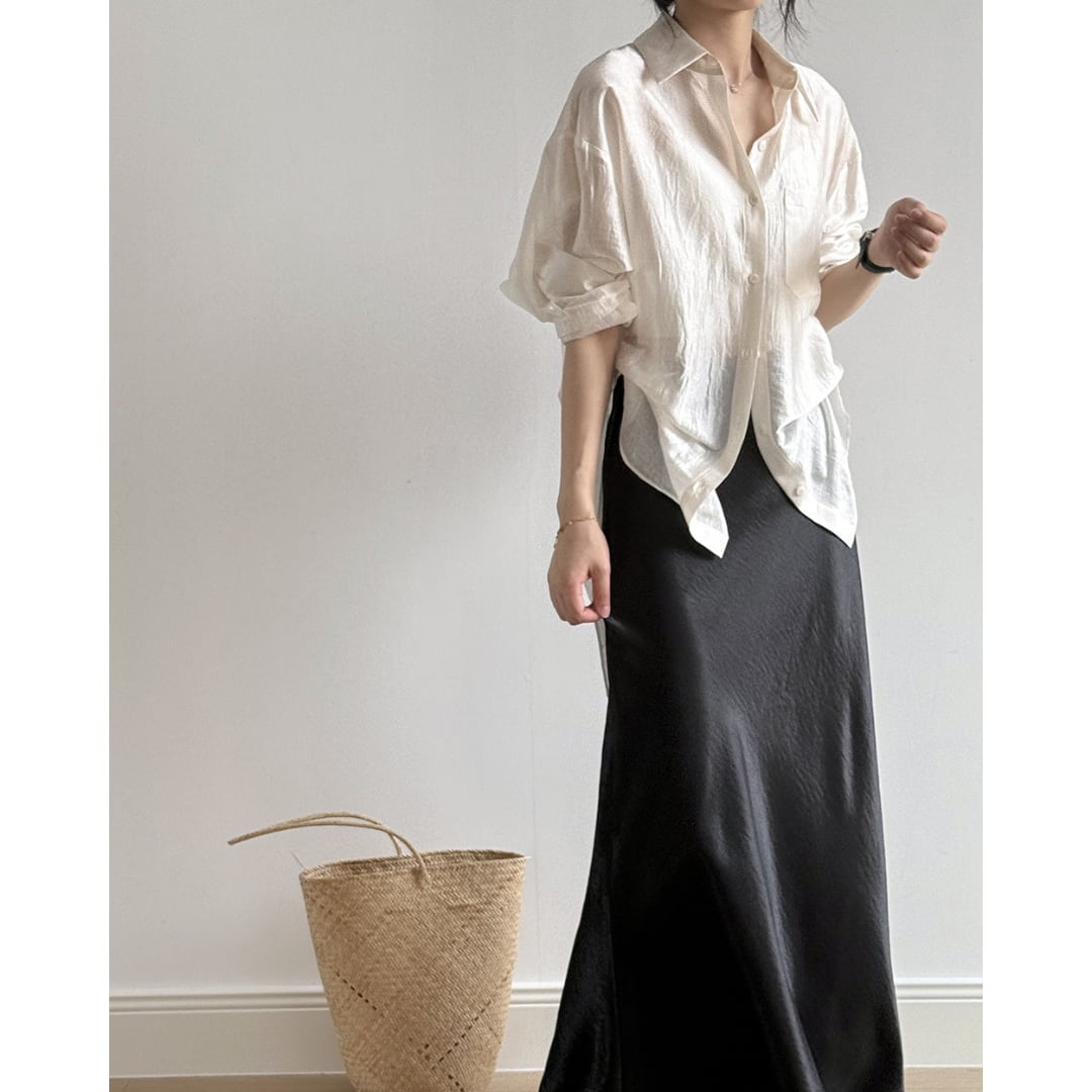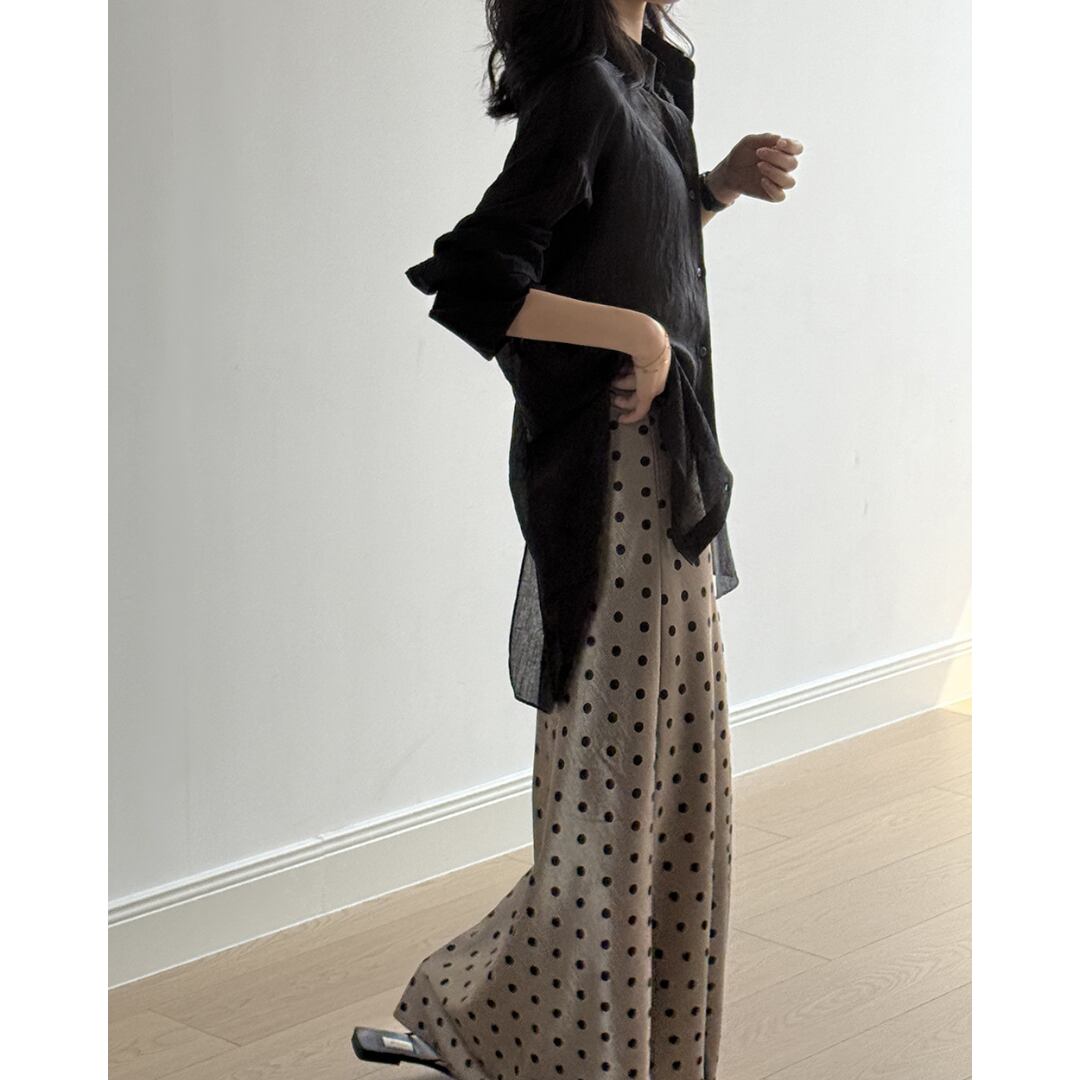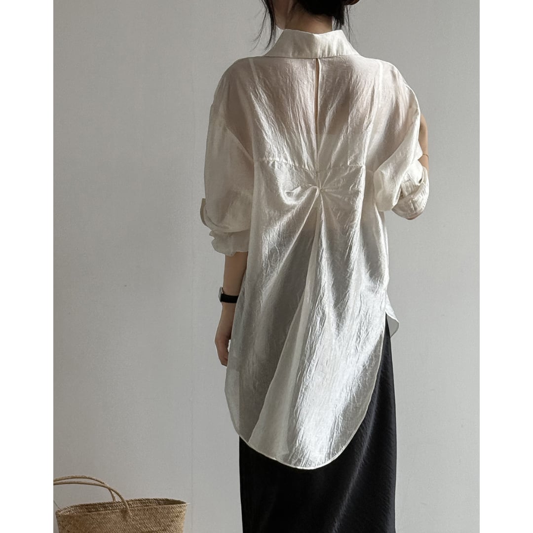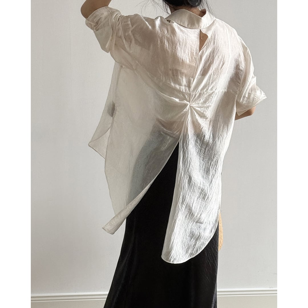 上質な透け感と、軽やかな素材が女性らしさを引き立てる1着。