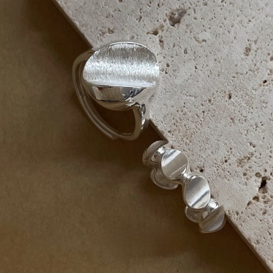 大胆なサークルモチーフと凹凸のあるデザインが、他にはない個性を放つシルバーリング。