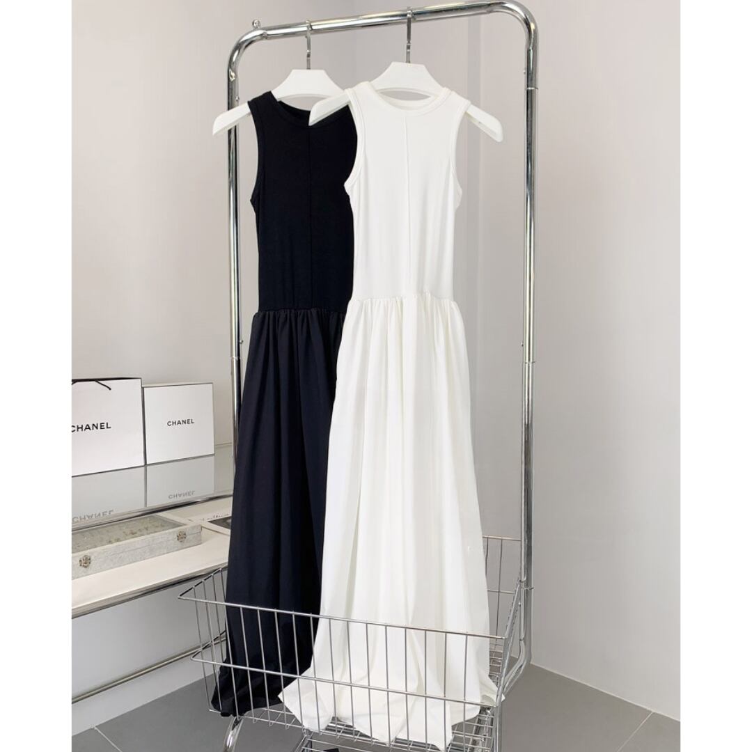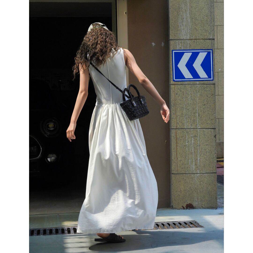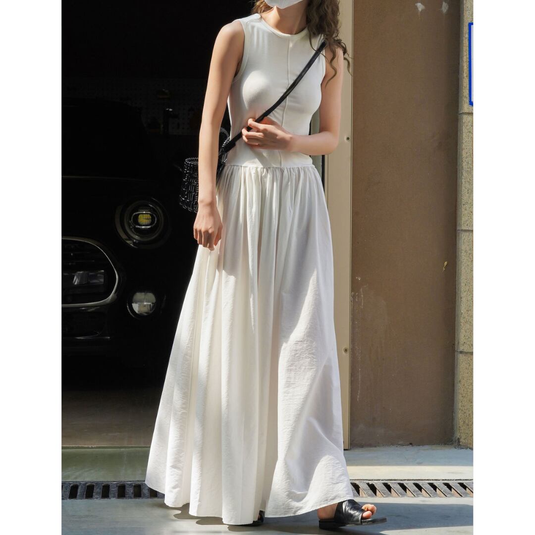 肌見せバランスが絶妙なノースリーブに、ニュアンスたっぷりのシルエットが◎