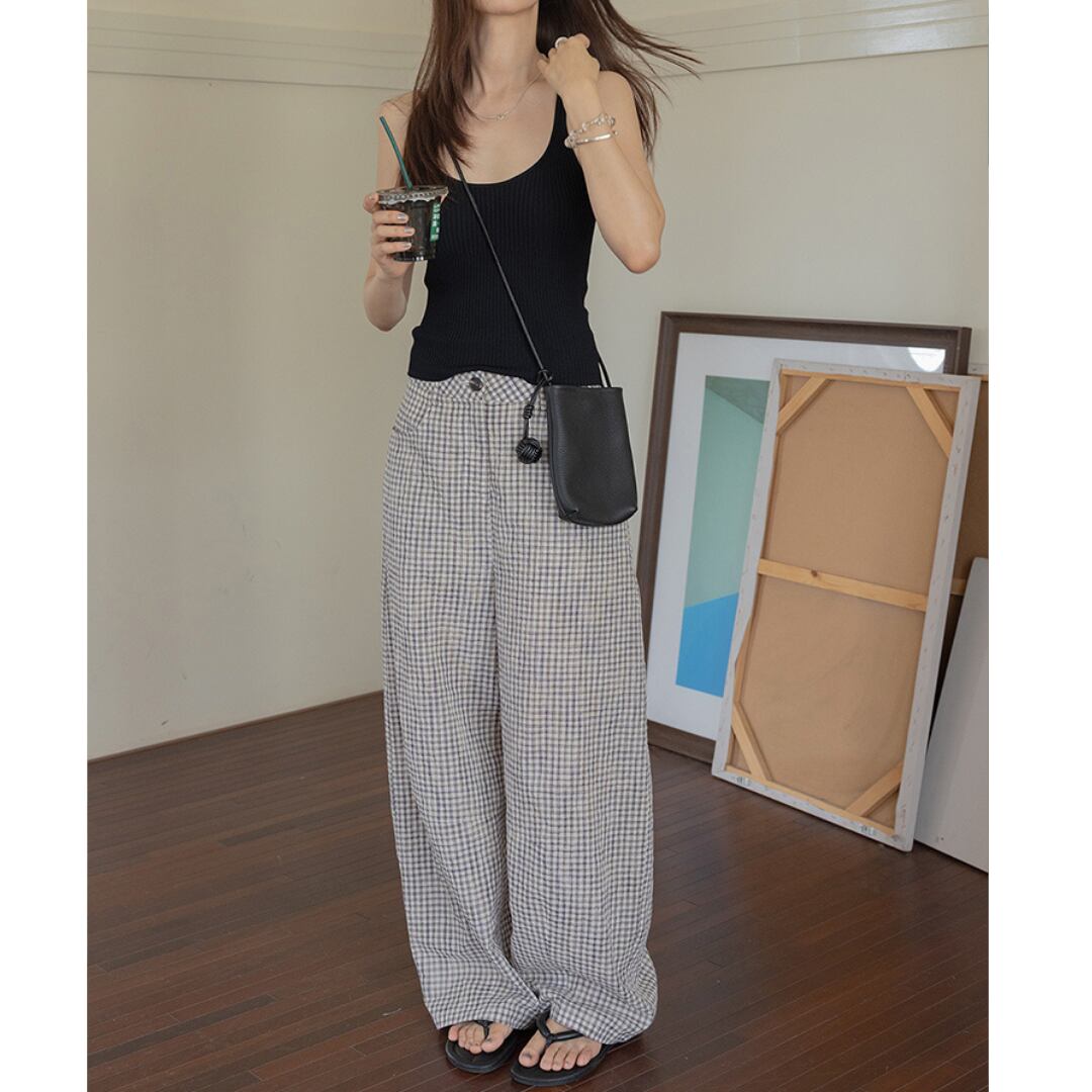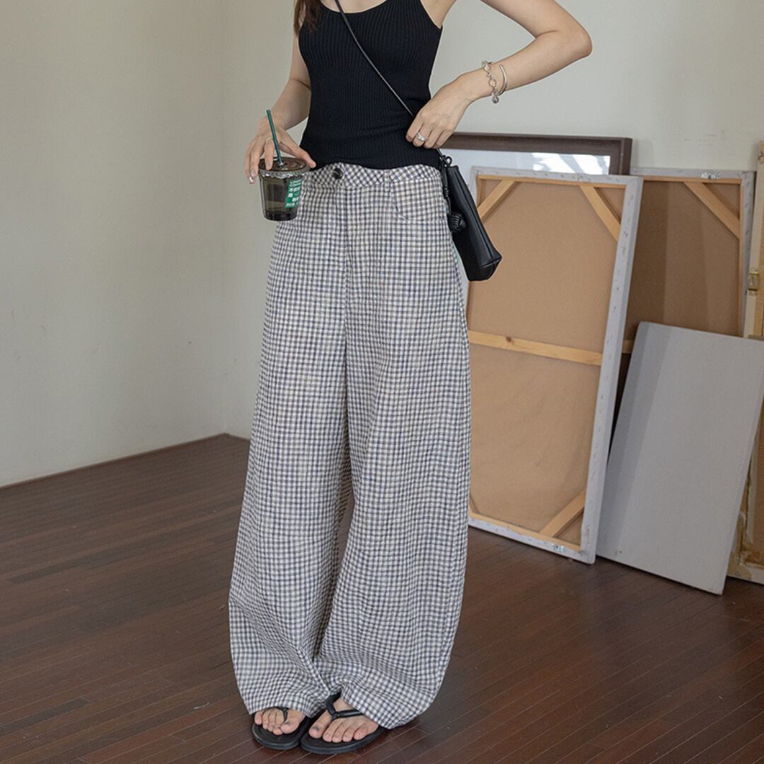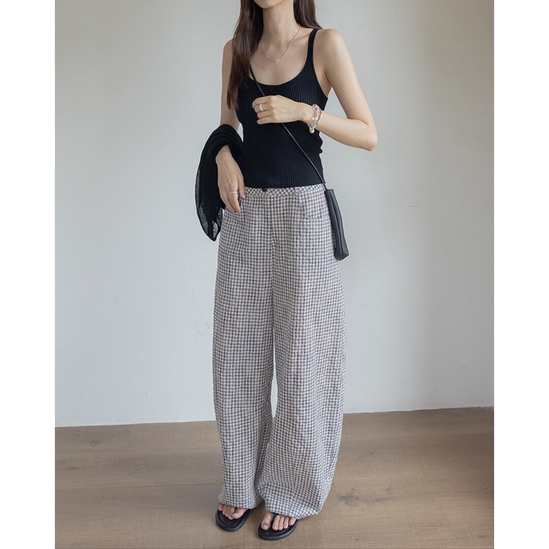 Gingham Check Wide Pants k0940
