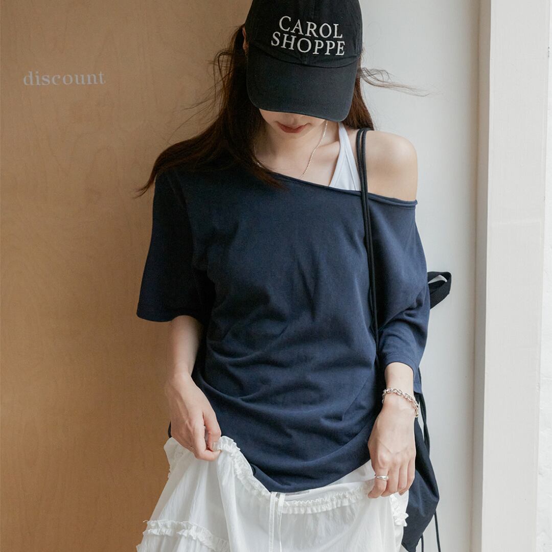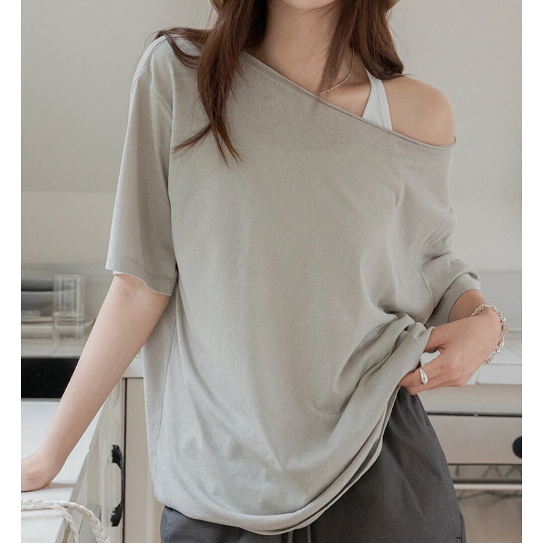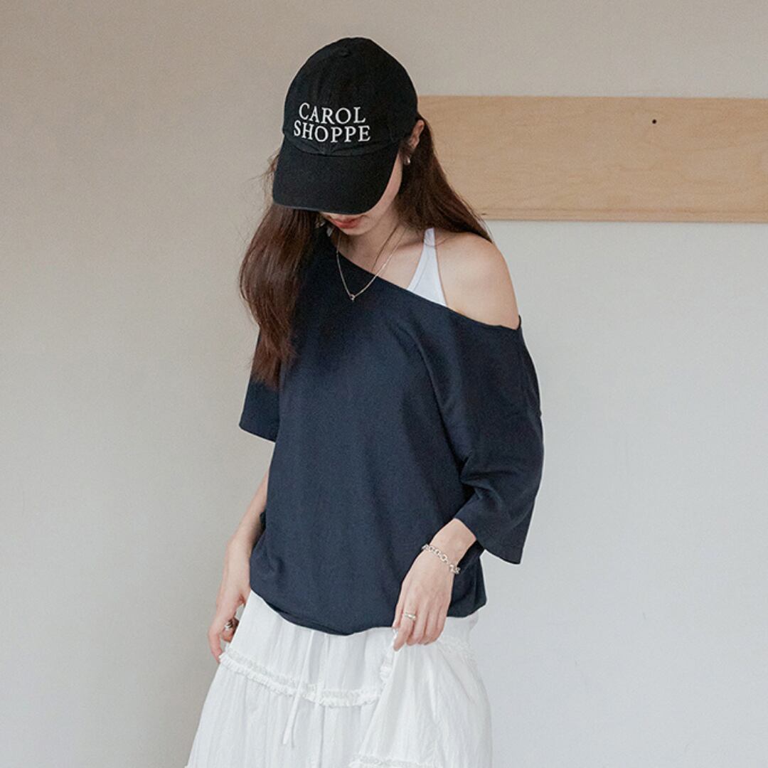 シンプルなのにちゃんと女性っぽく、大人の肌見せがちょうどいい、カジュアルすぎないバランスのトップス。