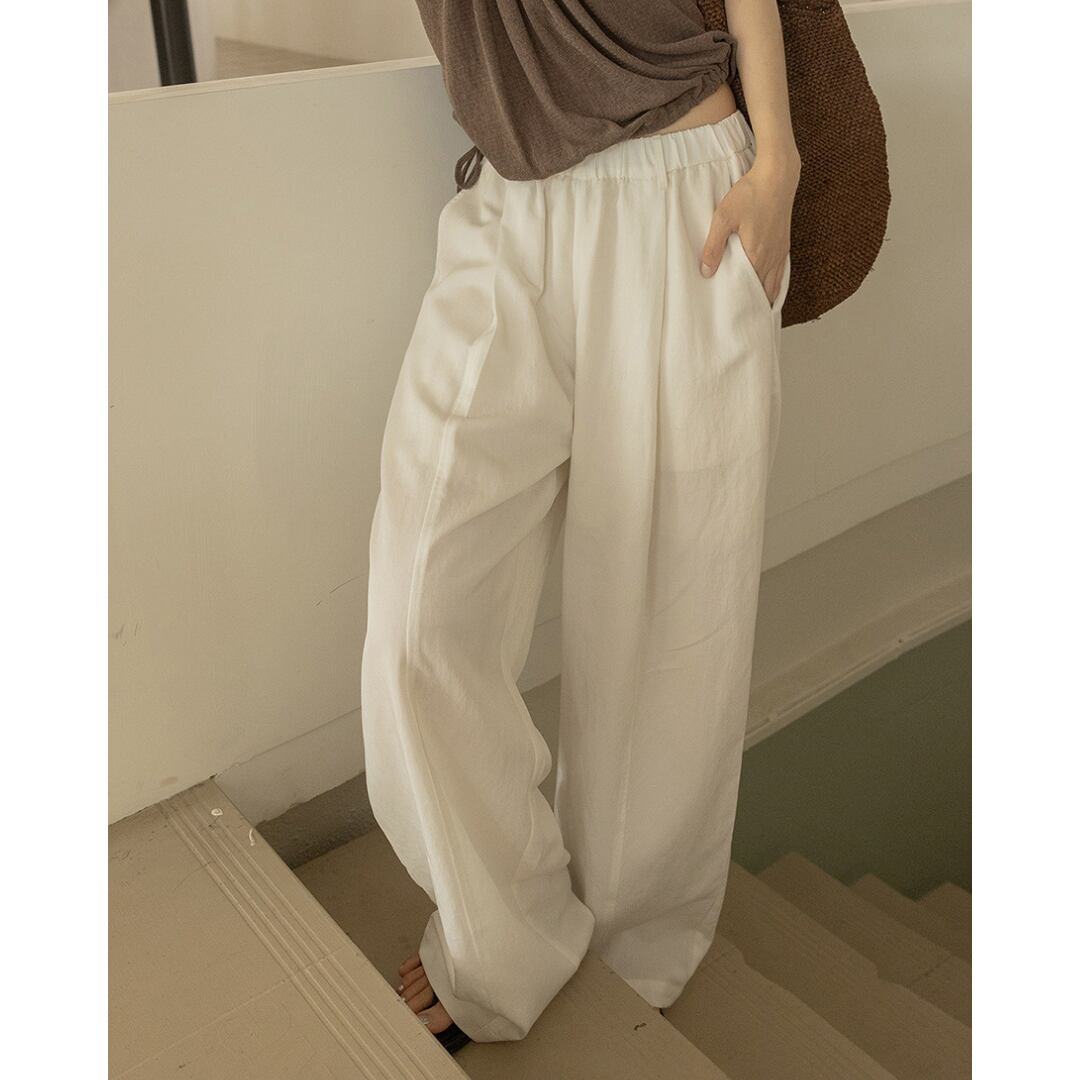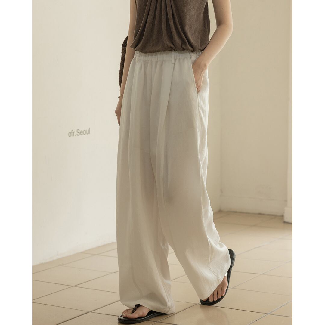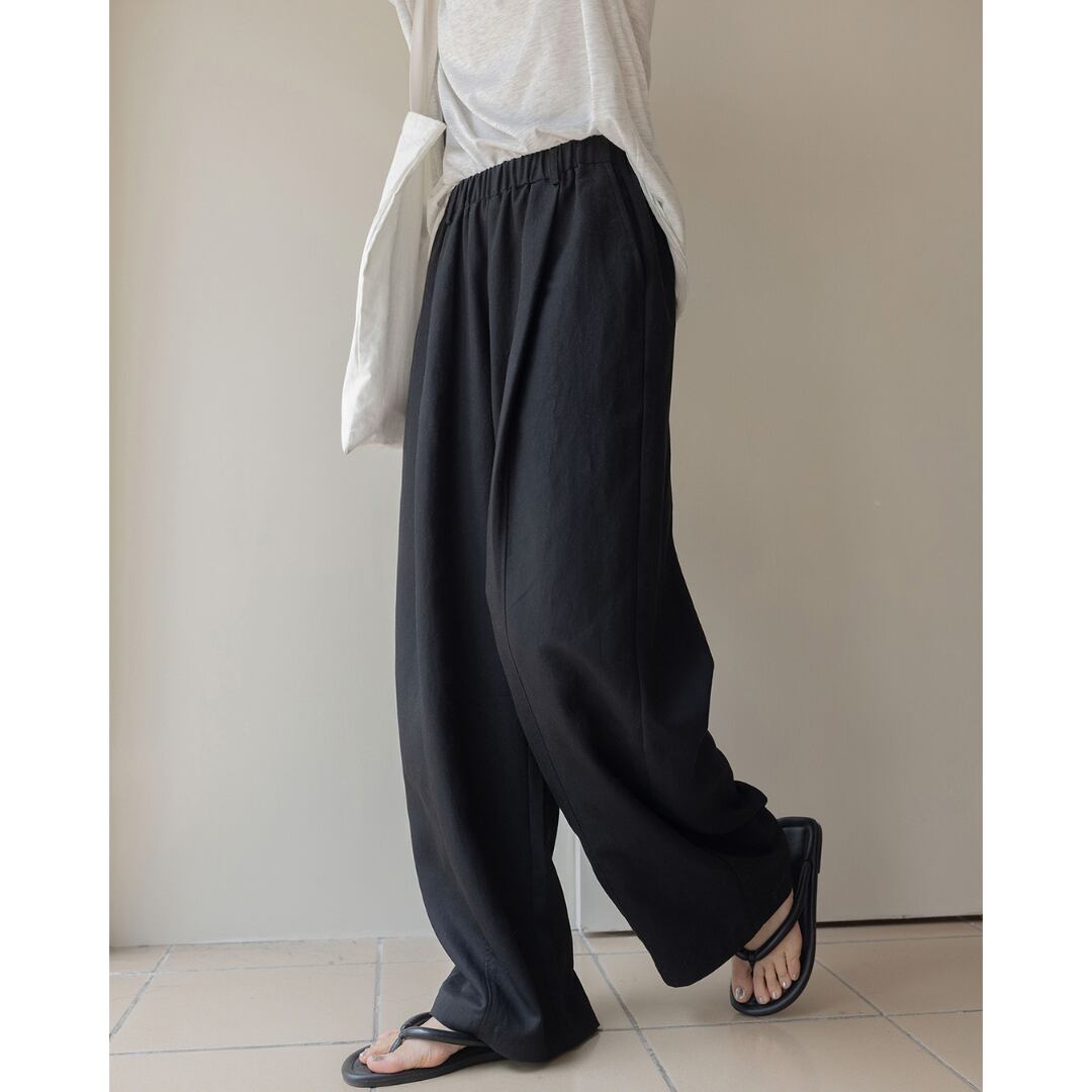 落ち感のある素材が、脚のラインをふわっとカバー。