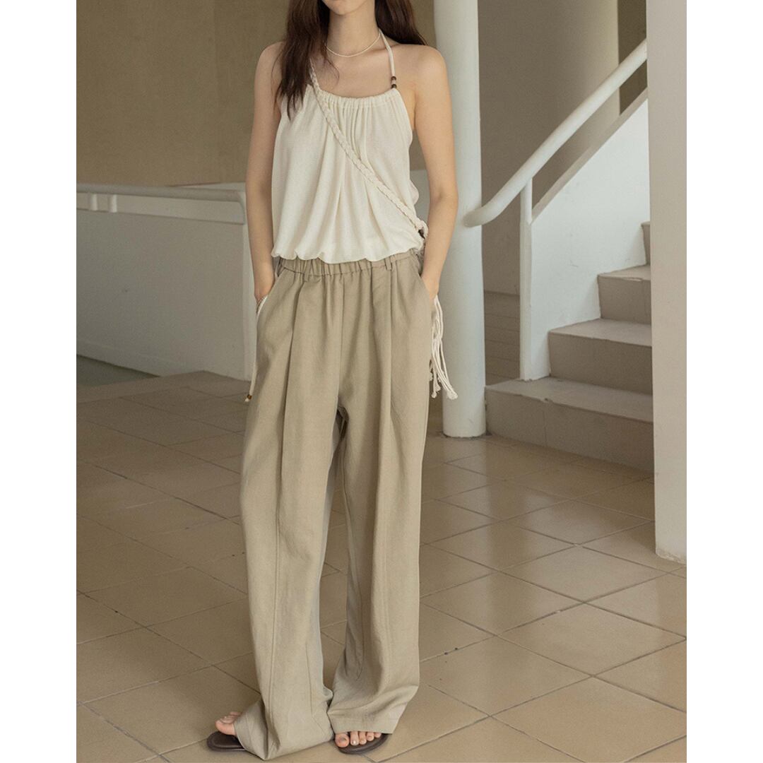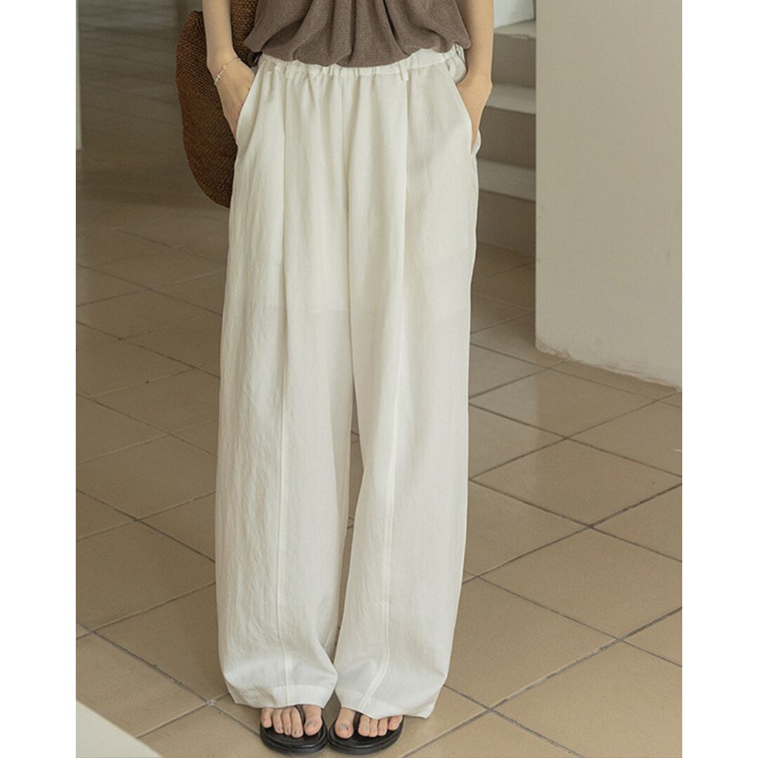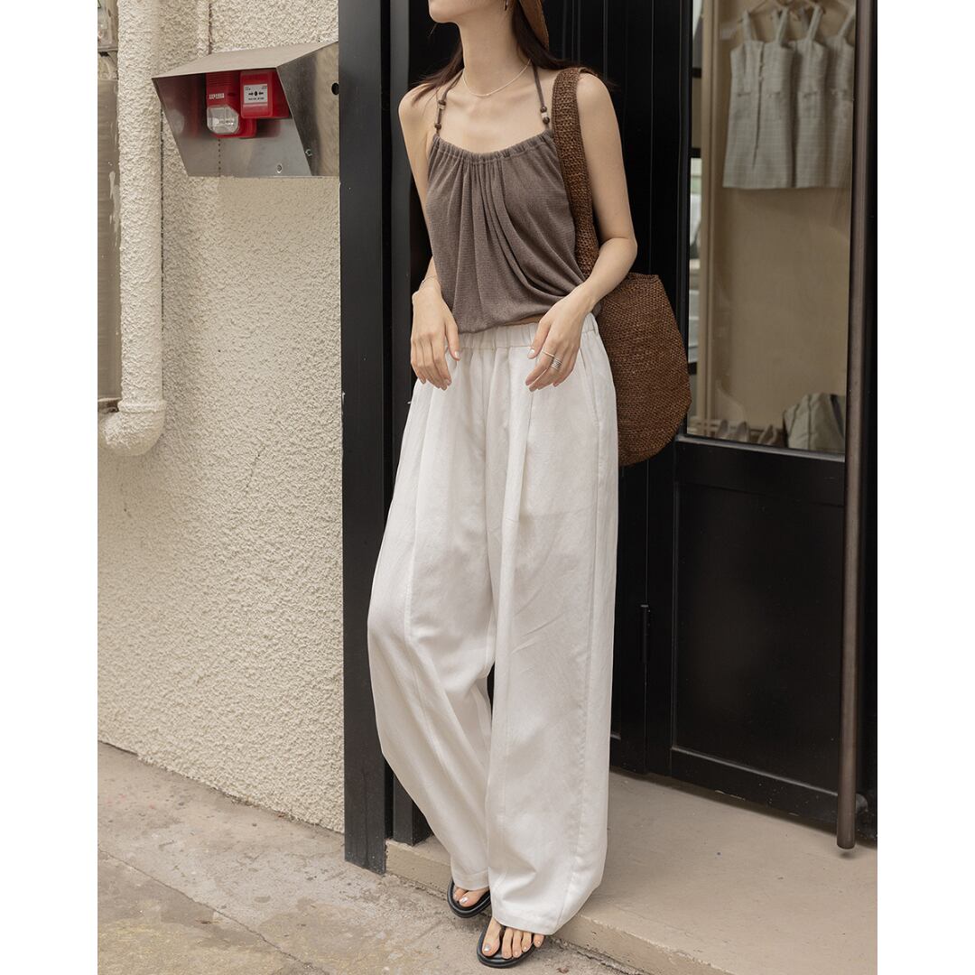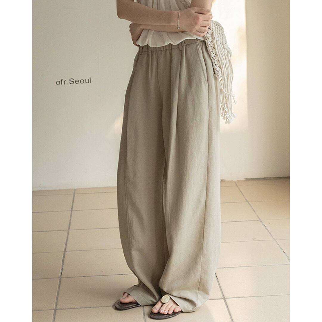 落ち感のある素材が、脚のラインをふわっとカバー。
