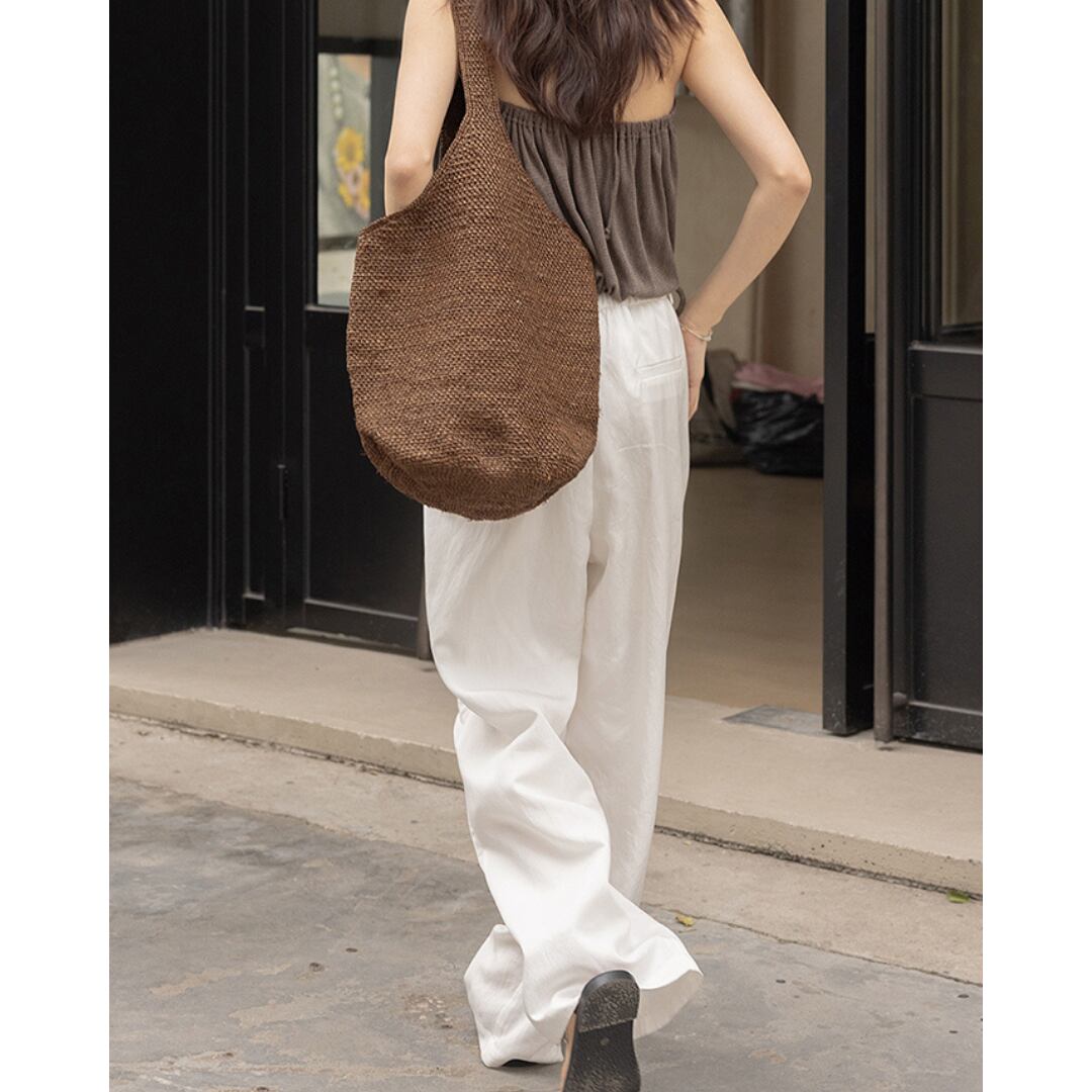 シンプルなTシャツ・シャツやブラウスにも合わせやすく、力を抜いてもおしゃれがキマるパンツです。