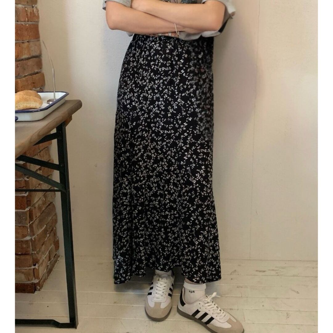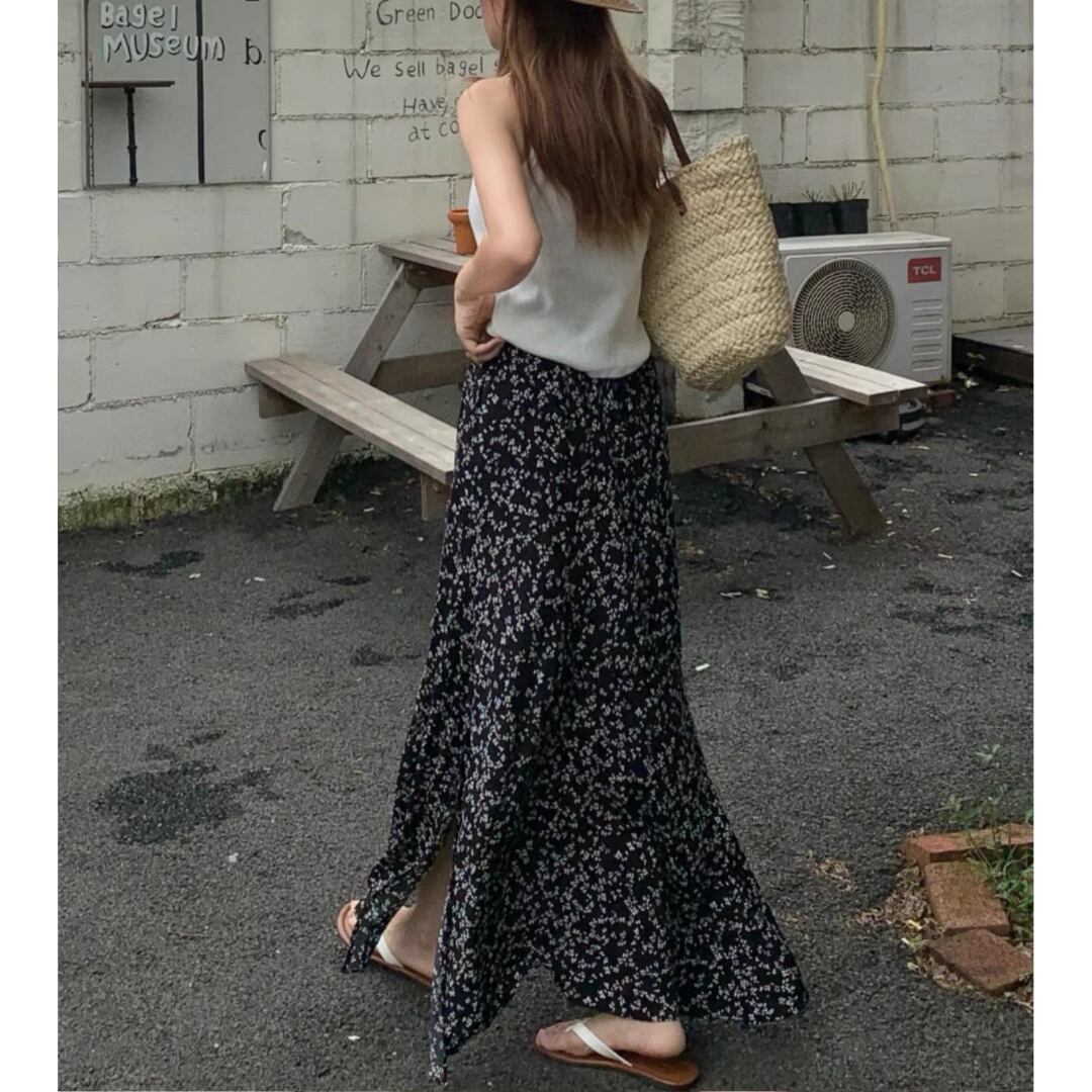 小花柄に軽やかなスリットが、ほんのり大人の抜け感を演出したデザイン。