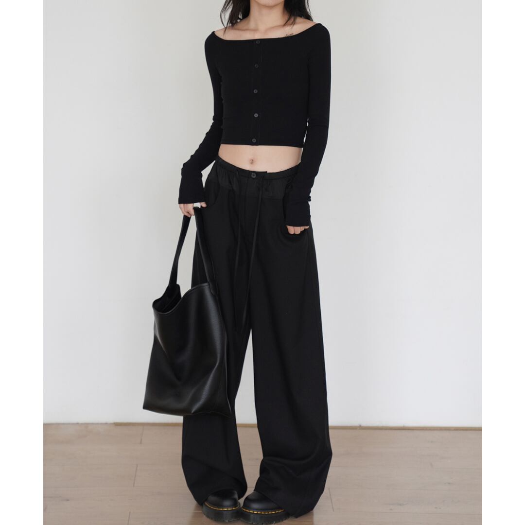 ワイドシルエットで気になるラインも拾わず、すっきりと着こなせます。