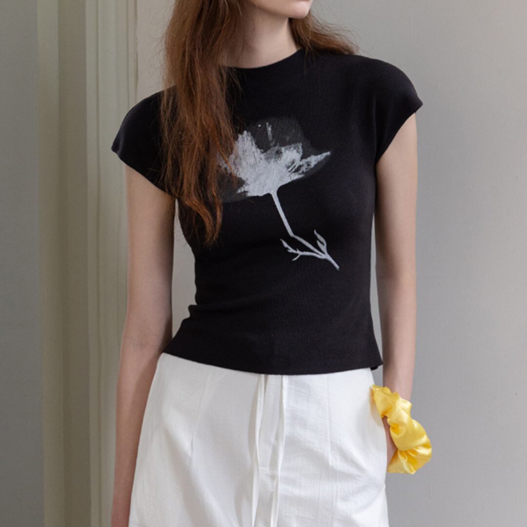 フラワープリントが目を惹く、サマーニット。