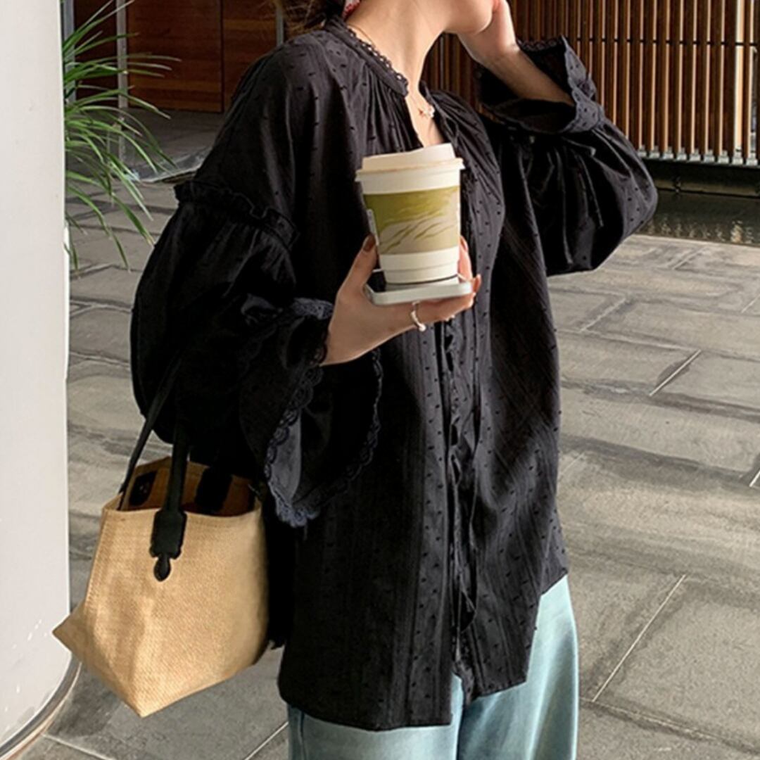 着るだけで、日常にちょっとしたときめきをくれるブラウスです。