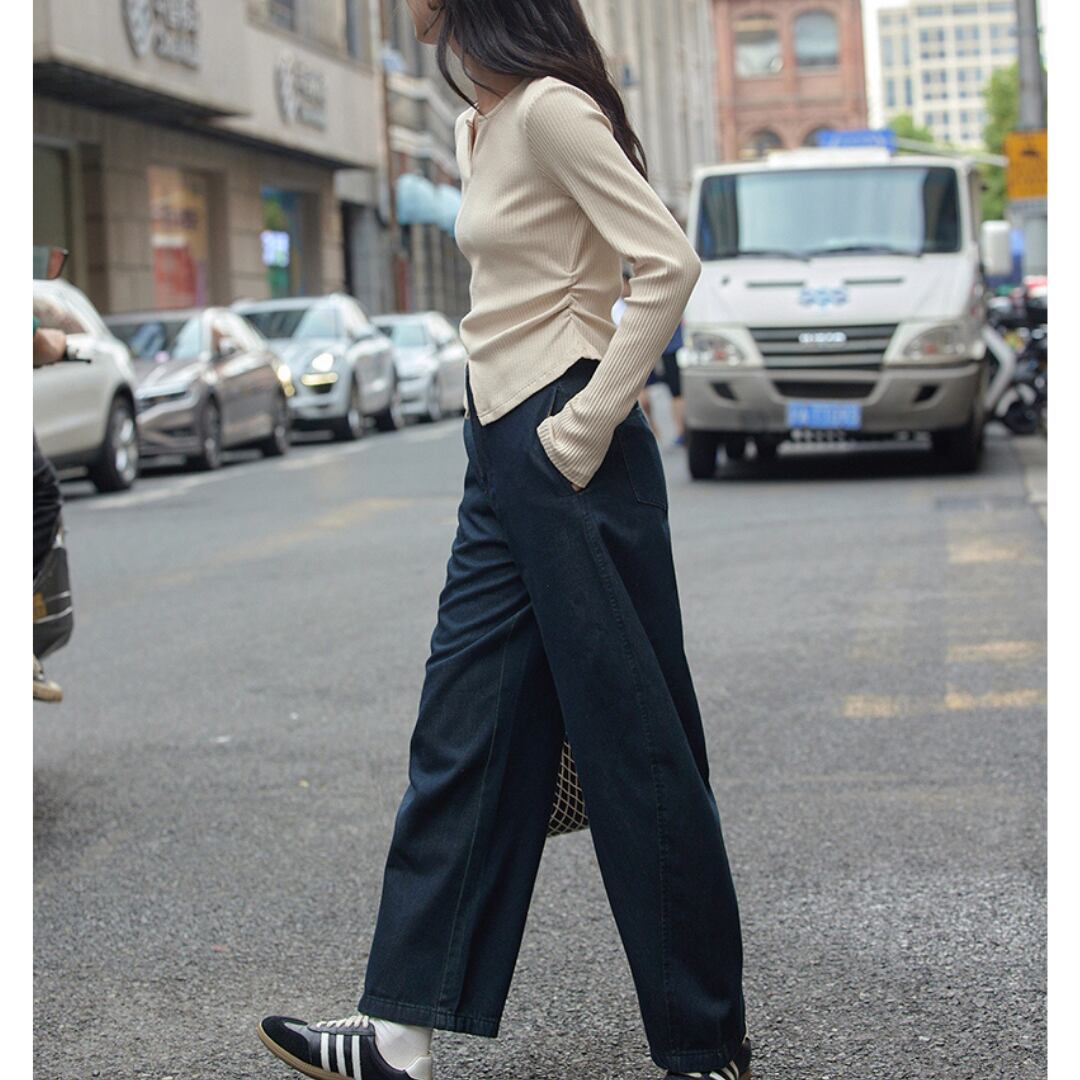 ボディラインをきれいに見せるシルエットは、1枚ではもちろん、ジャケットやカーデのインナーにも映えるアイテムです。