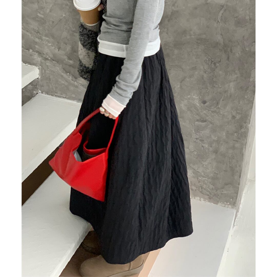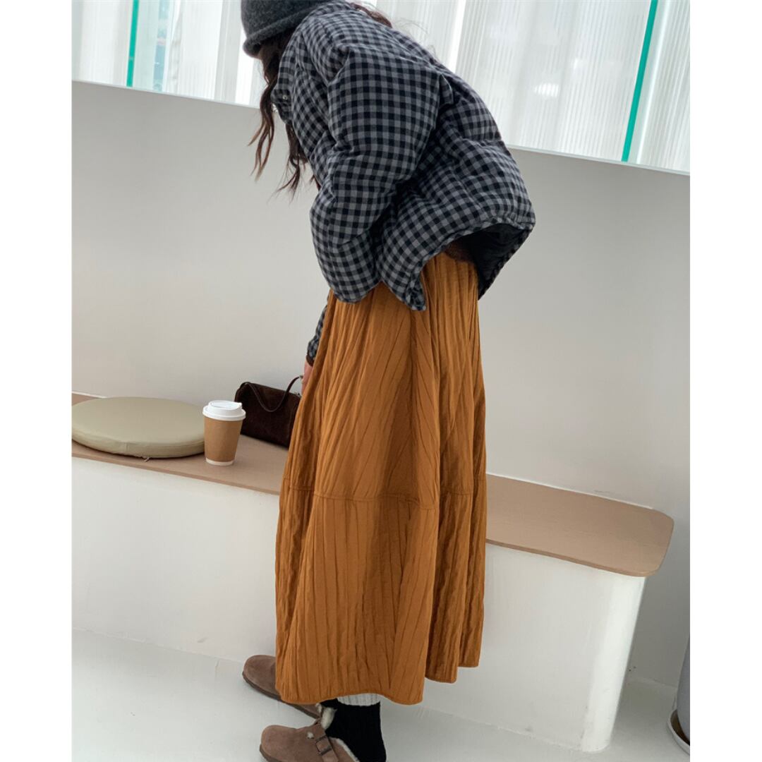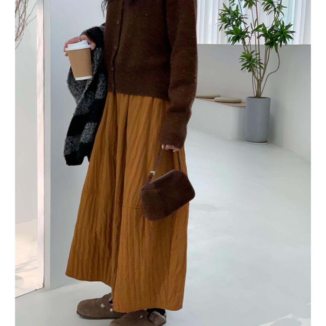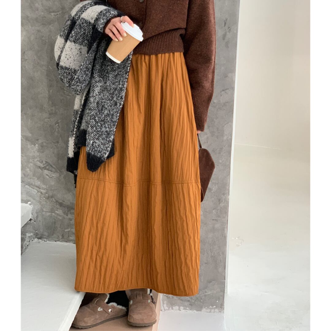 優しいシワ加工が魅力のロングスカート。