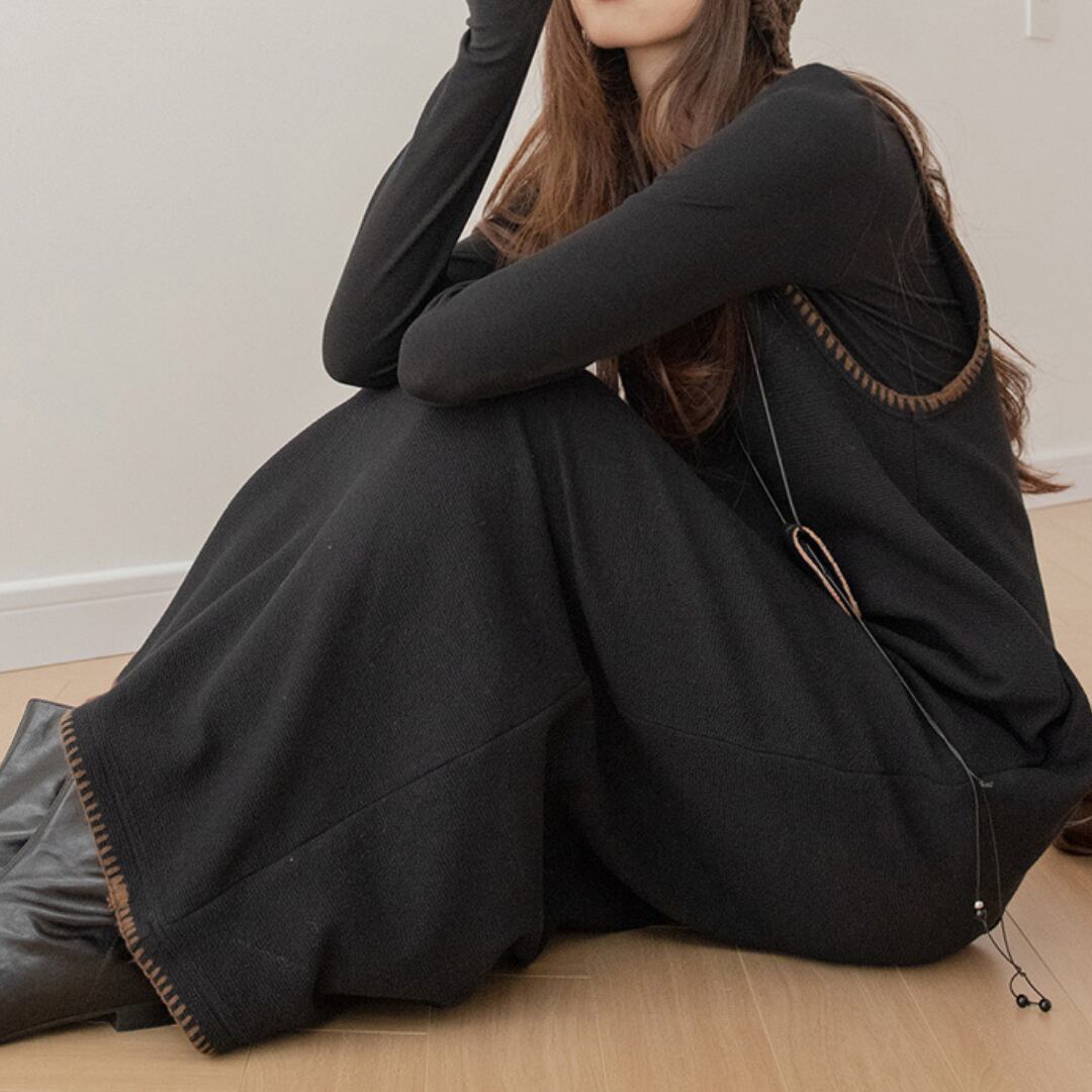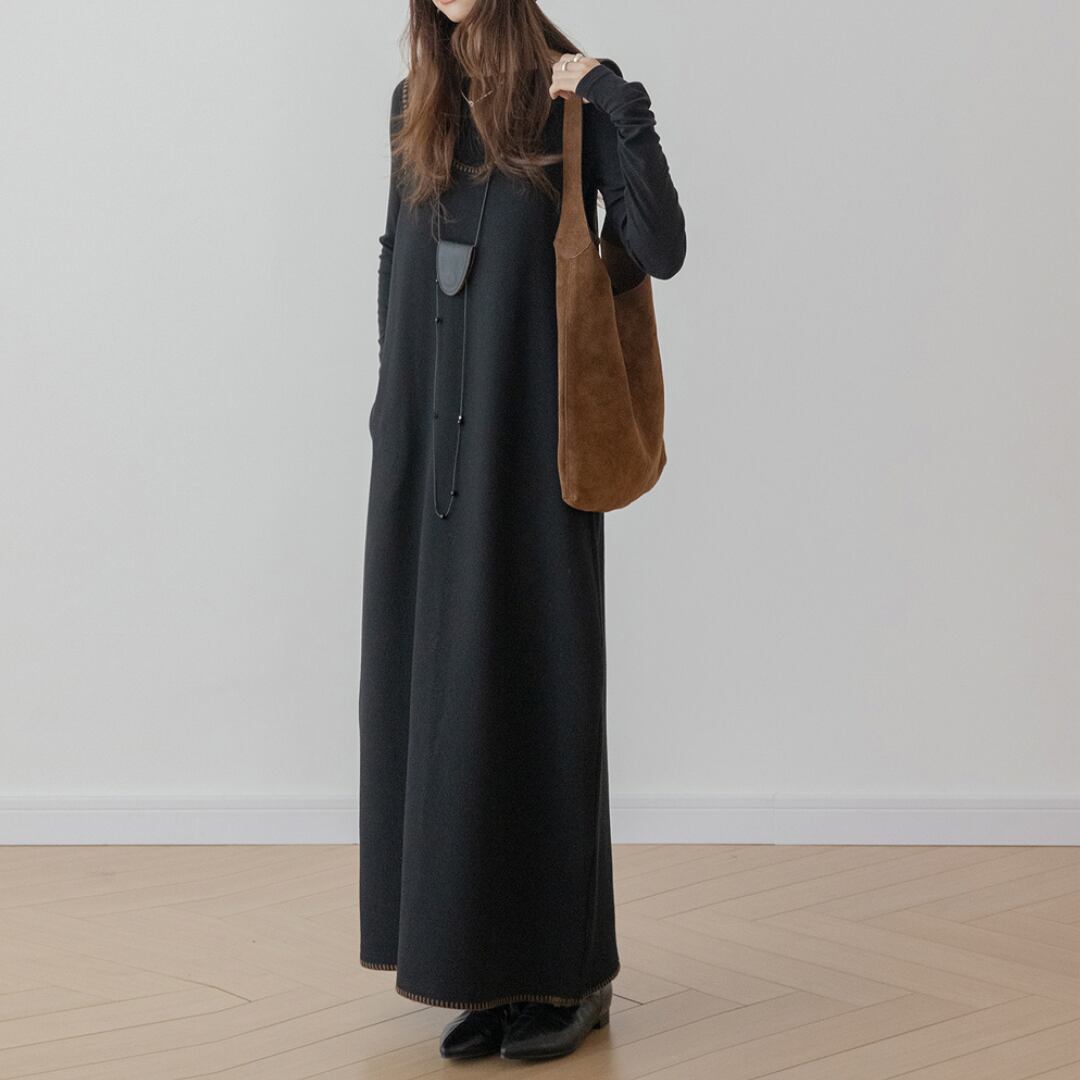 カットソーやタートル、ブラウスなど、インナー次第でロングシーズン着まわせる万能アイテムです。